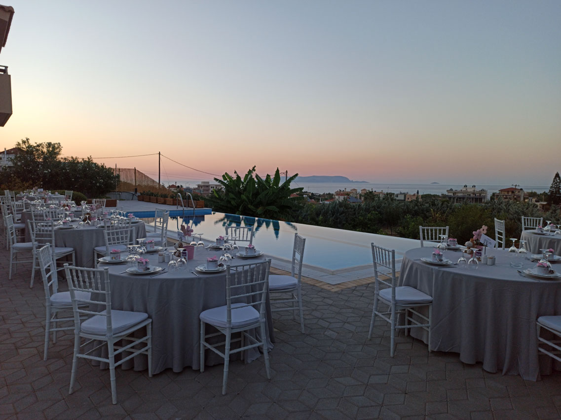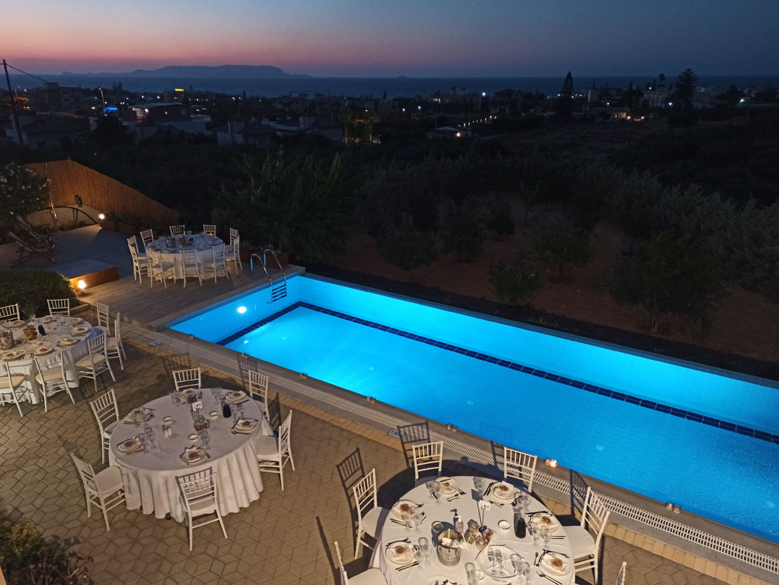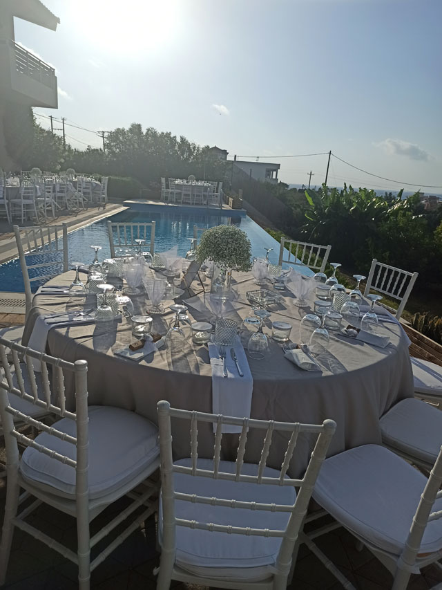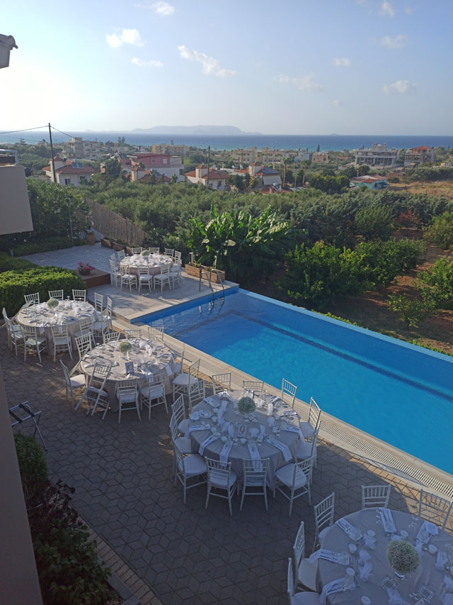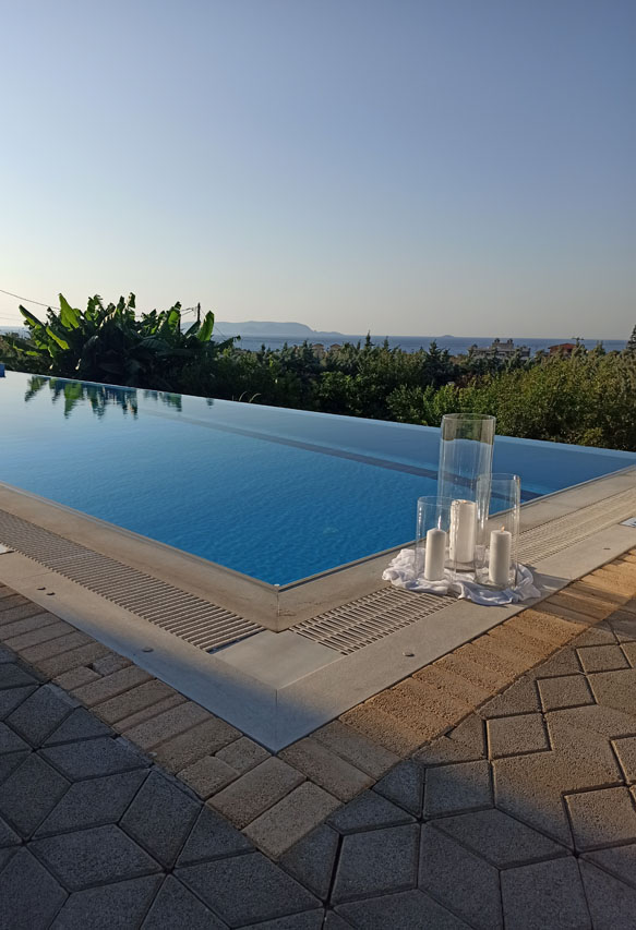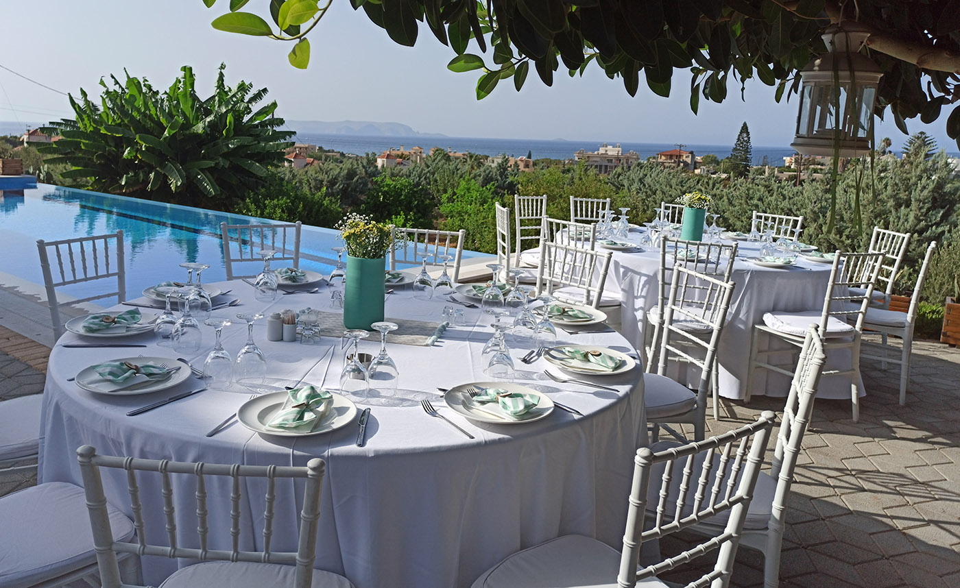 Villa Four Seasons offers a unique external private area for any special social event. Superb view to the sea, a large infinity pool, trees and beautiful gardens around, compose the ideal scenery for the event of your dreams. A luxury stay in the villa with your other half, family or friends may be combined with your private wedding ceremony, birthday party or any other event with your beloved ones, up to 150 people. External toilets available to service your guests. We are here to help you organize your event or suggest an event planner to undertake everything according to your needs and expectations.