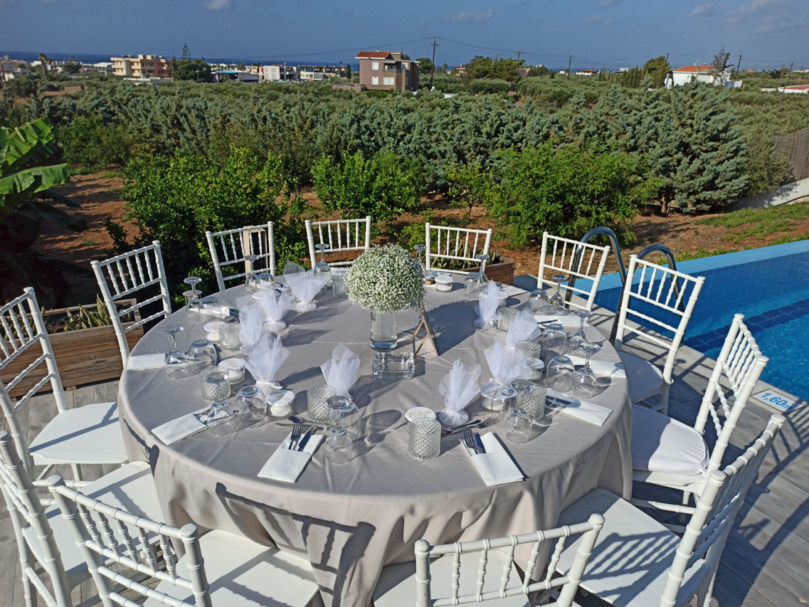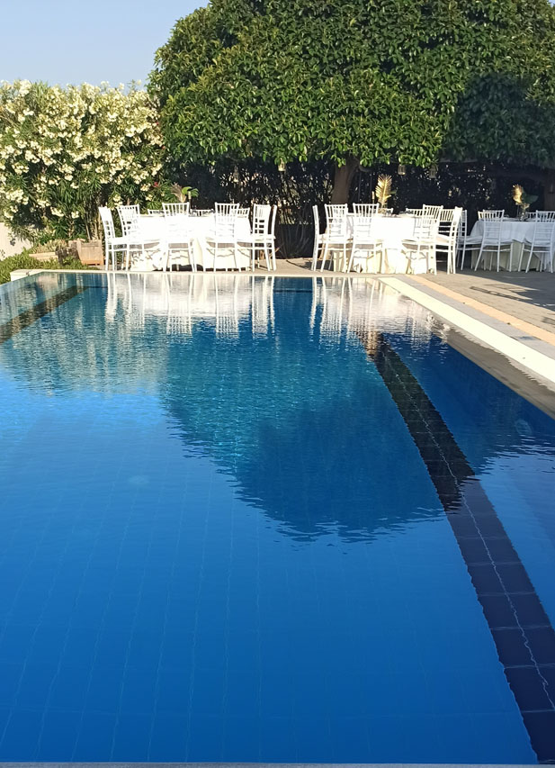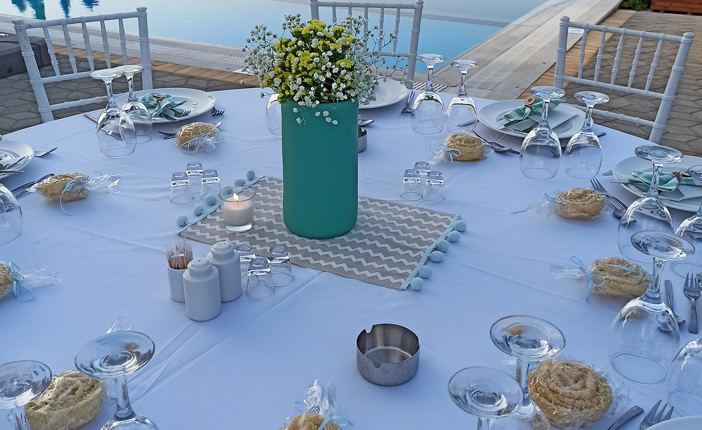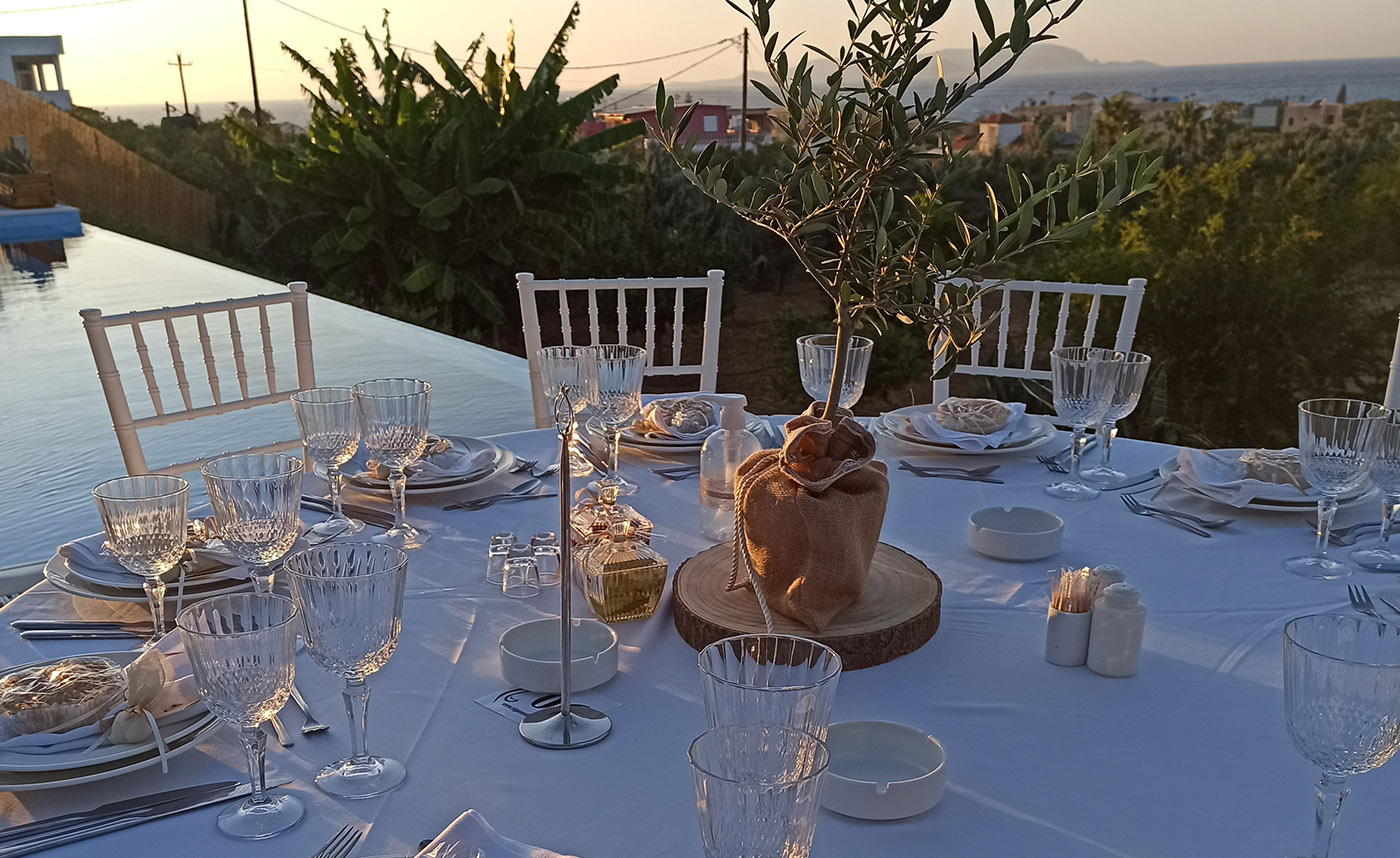 Villa Four Seasons offers a unique external private area for any special social event. Superb view to the sea, a large infinity pool, trees and beautiful gardens around, compose the ideal scenery for the event of your dreams. A luxury stay in the villa with your other half, family or friends may be combined with your private wedding ceremony, birthday party or any other event with your beloved ones, up to 150 people. External toilets available to service your guests. We are here to help you organize your event or suggest an event planner to undertake everything according to your needs and expectations.