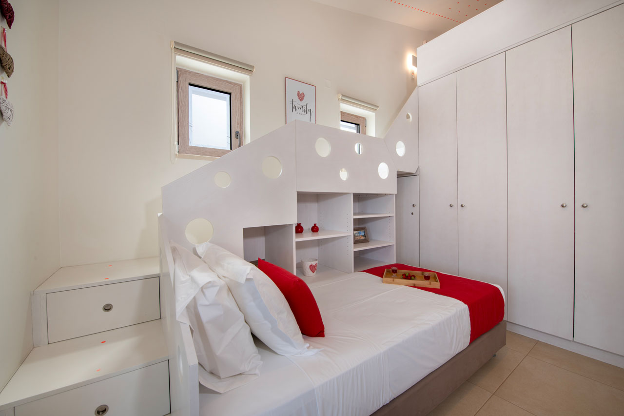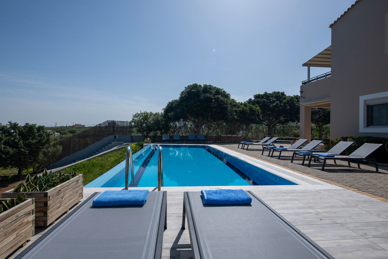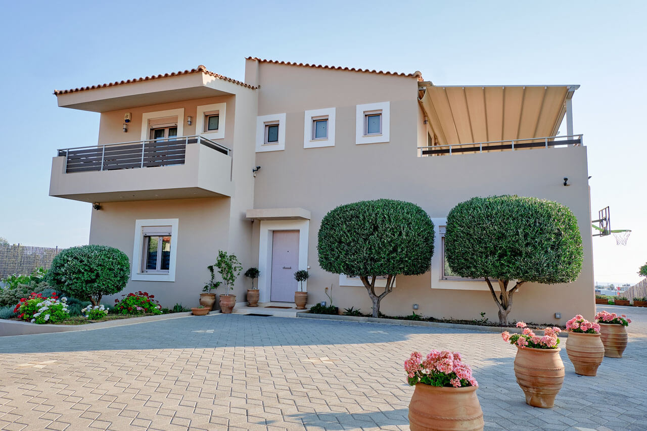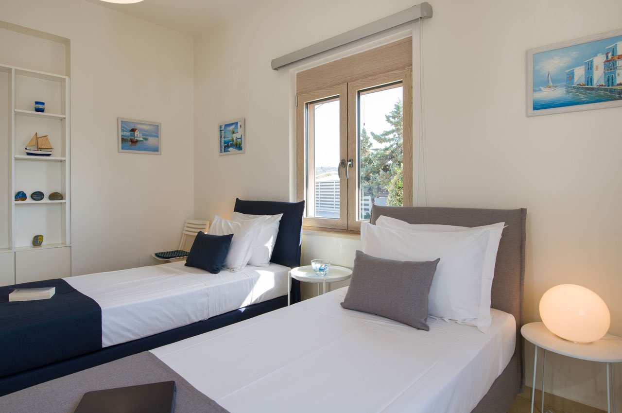 The villa of 253 sq.m is neatly designed with love, care and respect to its guests and offers all modern facilities for maximum comfort and satisfaction. It spreads over two floors and it can host up to 12 guests, who may also use the private gym fitted out on the lower floor of the villa.